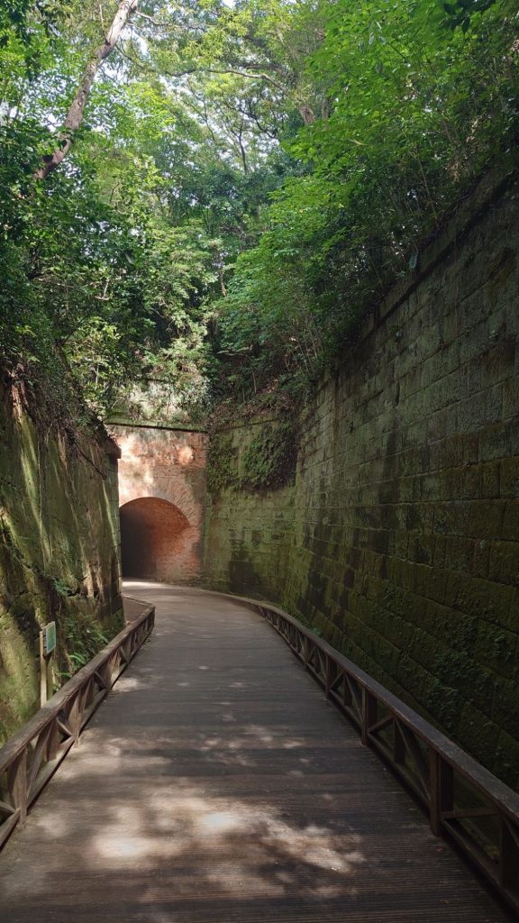 猿島はかつて軍事要塞として使われていた島で、赤レンガのトンネルや石造りの壁がそのまま残っていて、ガイドさんの説明を聞きながら歩くと歴史の重みを実感できます。